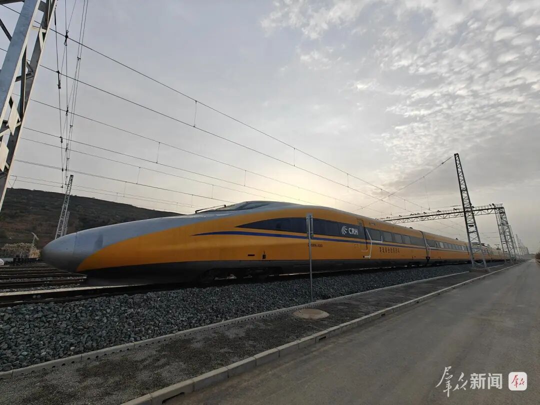 此前,西十高铁陕西段已于3月29日启动联调联试,通过开行由多种检查车编组后的专业检测列车,对轨道几何、接触网状态等基础项目进行低速核验,为综合检测列车上线创造了良好条件。本次开行的综合检测列车为CRH380AJ型高速综合检测列车,搭载多系统高精度检测设备,进行时速140至200公里逐级提速测试和非接触测量,同步完成轨道、弓网、通信信号、空气动力学、噪声振动等全方位检测,实现从单项核验到综合检测的全面升级。