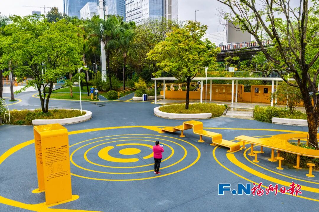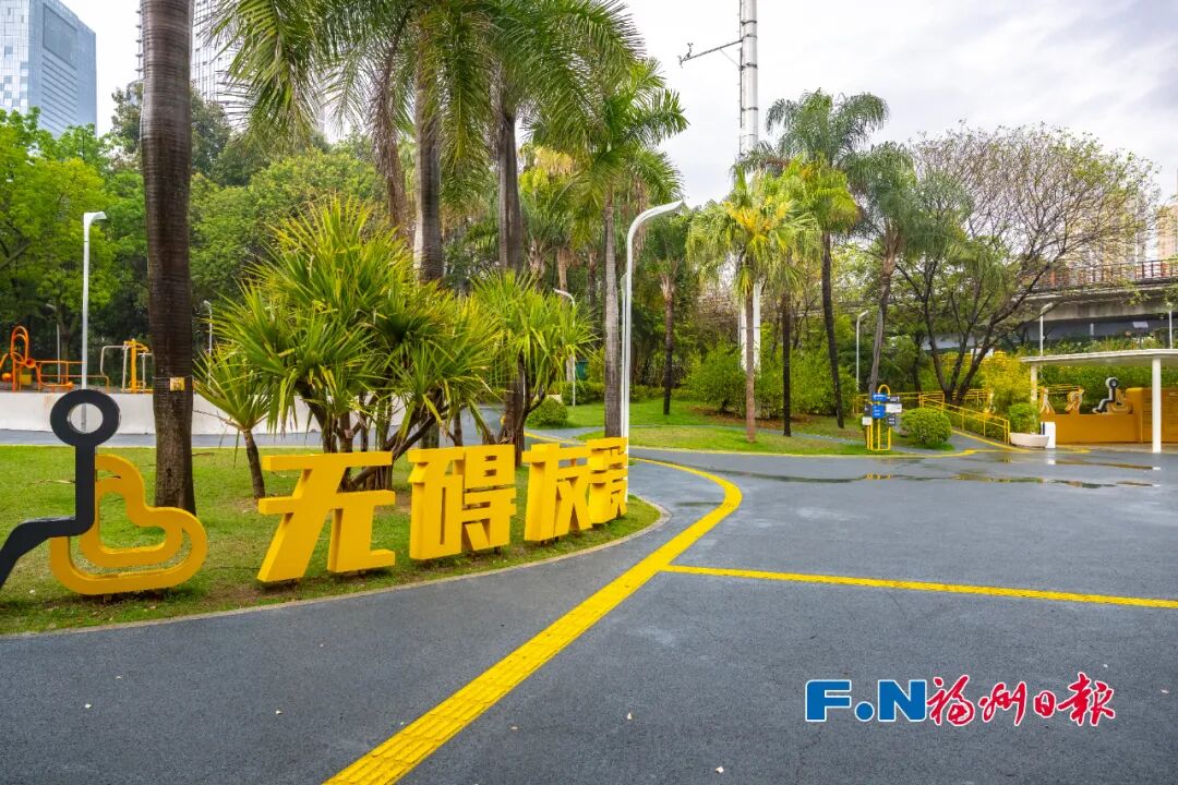 公园通过增设盲道、法规展陈、残疾人名人墙、无障碍理念艺术设计装置、爱心扶手桌椅、阶梯式座椅、共享驿站、无障碍厕所等设施,构建“理念传播、场景体验、普法教育、社群融合、生态示范”五位一体功能体系,成为展示福州无障碍建设成果的重要窗口。