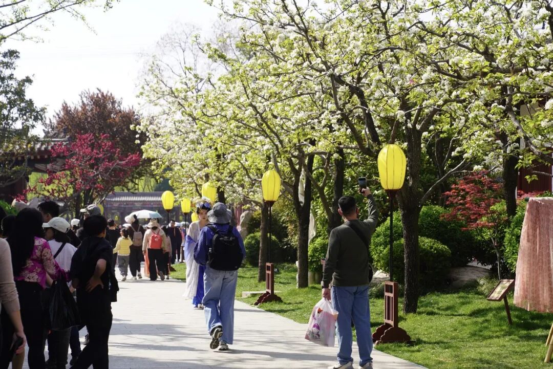 4月3日,在骊山脚下的华清宫景区内,樱花、梨花、桃花盛放,唐风古殿、红墙黛瓦与多彩花枝相映成趣。游客漫步其间踏青赏花,在繁花翠影中尽赏春日画卷。据了解,华清宫景区以满园春色和盛唐文化为主题,推出系列沉浸式游园活动,通过赏花、互动体验、摄影大赛等,为游客打造多元消费新场景。(西安报业全媒体记者 郝钟毓 通讯员 王三合 摄)