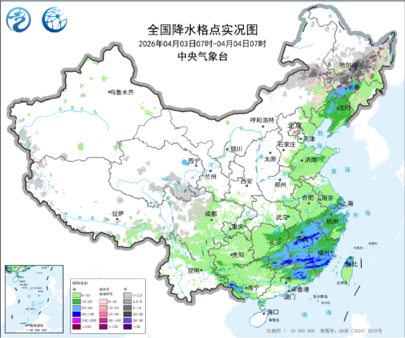 另外,4至6日,内蒙古东部、东北地区有小到中雪或雨夹雪,局地暴雪。5至7日,西藏中北部、青海南部、川西高原西北部等地有小到中雪或雨夹雪,局地有大到暴雪;江南中南部、华南北部和东部及重庆、贵州、西藏东南部等地有中到大雨,局地有暴雨或大暴雨,部分地区伴有短时强降水、雷暴大风等强对流天气。