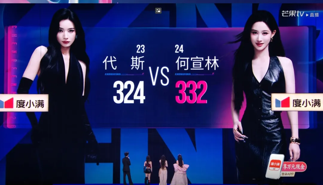 第二组:孙怡 477票 VS 江语晨 358票 孙怡凭借亮眼的舞台表现,以477票的高分轻松取胜,江语晨则以358票遗憾落败。