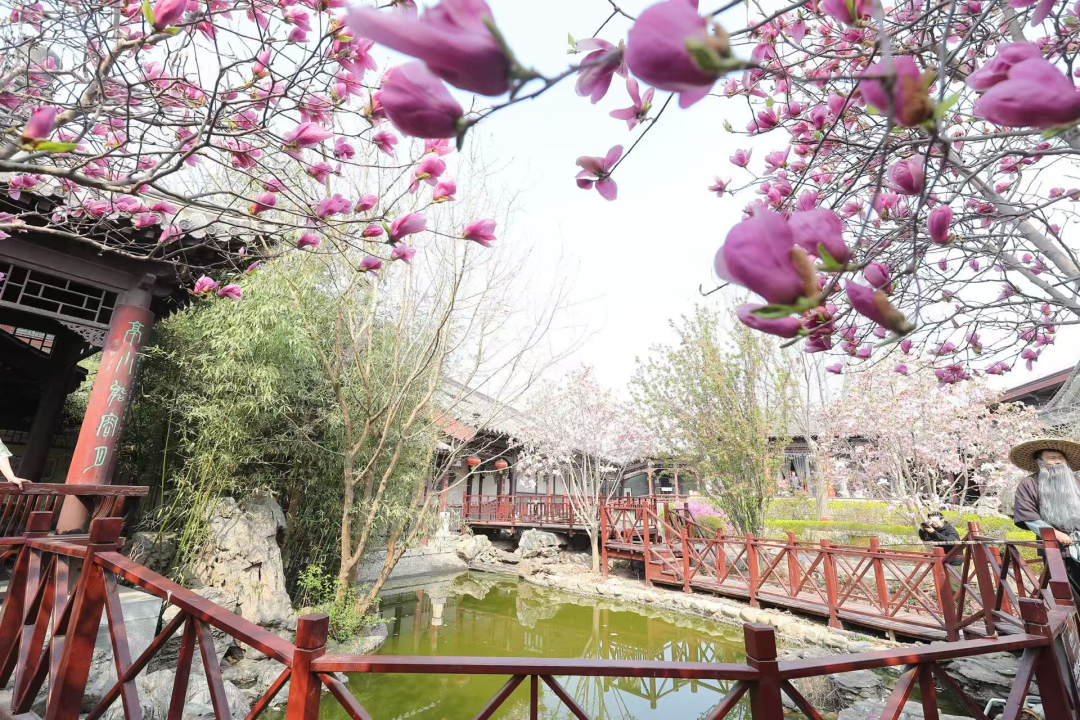 石家大院的玉兰花开了,有的绯红、有的洁白,满树满枝。小廊回合,水绿鸟鸣,此情此景,如果看见一对身着古装的“才子佳人”,你一定不要意外。“古有唐寅自称桃花仙人,今有杨柳青多情书生玉兰仙……”小桥之上,一位古装打扮的书生正在演练台词。