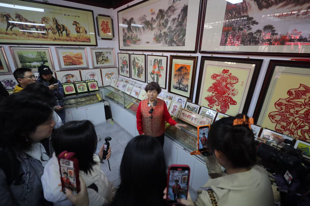 片纸见乾坤,小院故事多。在古镇的一个四合院,杨柳青剪纸非遗技艺传承人郝桂芬讲述着自己和女儿的经历。作为第五代传承人,郝桂芬独创了染色法,让剪纸的表现力大幅提升。陈列馆里,《清明上河图》《富春山居图》等名作借由她的剪刀得到再现,焕发了另一种生命力。