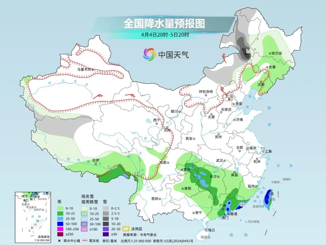 明后天,内蒙古东部、东北地区一带雨雪仍比较频繁。