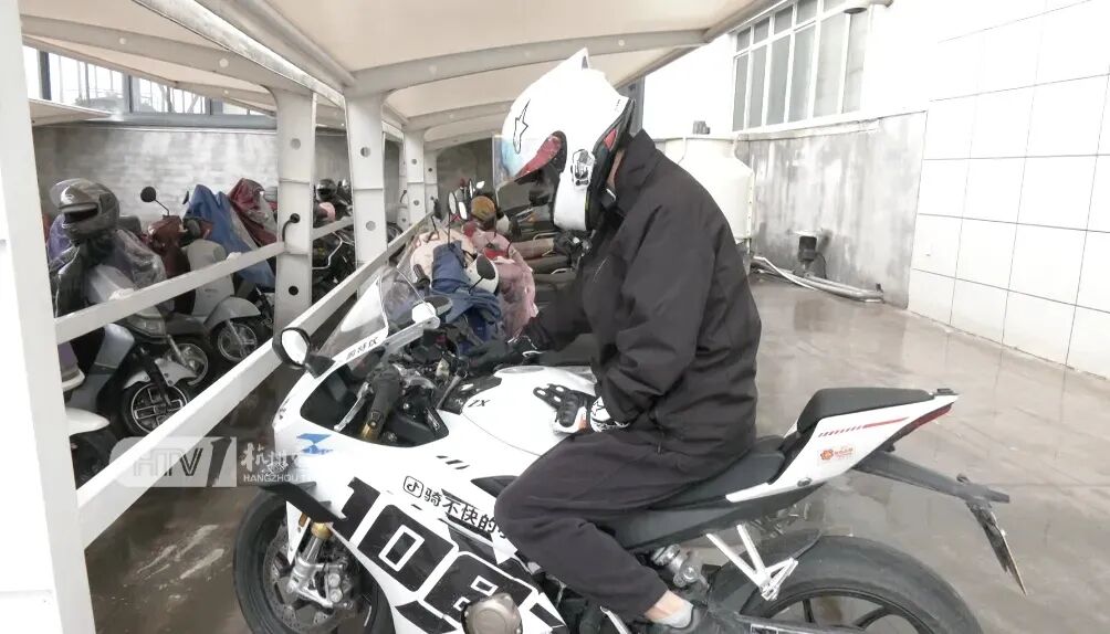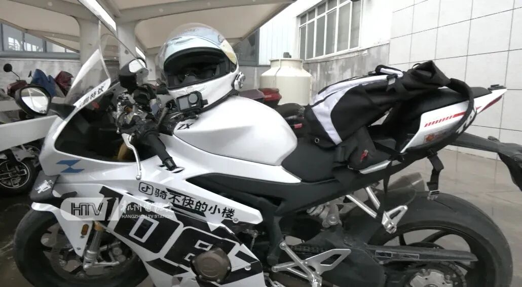 近日,记者在楼质军单位的电动车停车场见到了他和他的爱车:张雪500RR。他说这辆车也是今年1月份才刚刚购入的新车,但驾驶里程已有6740公里。