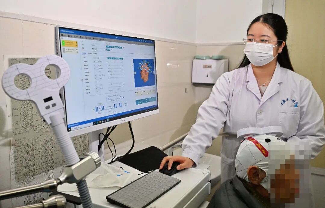 安医大一附院神经内科门诊,患者在接受重复经颅磁刺激治疗。