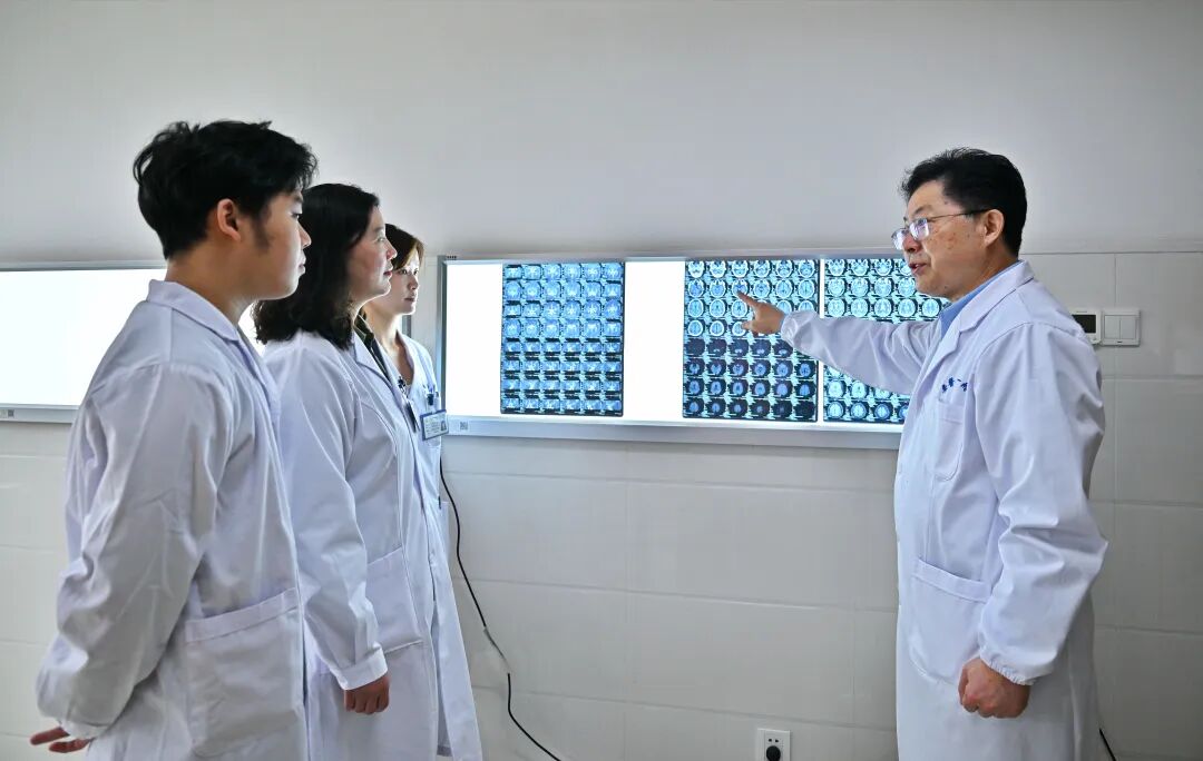 安医大一附院神经内科病房,神经内科首席专家汪凯(右一)带领团队分析病例。