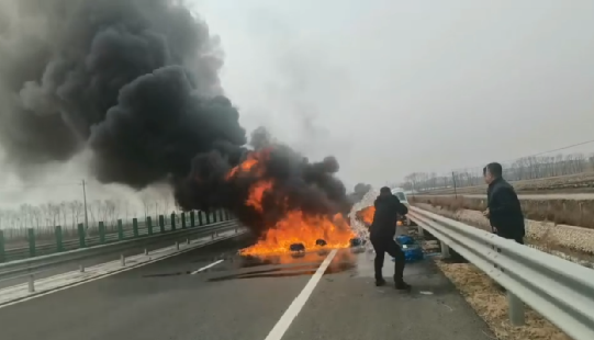 4月3日上午11时左右,黑龙江抚远至佳木斯高速路段距291农场约2公里处,一辆装载塑料滴灌带的小货车突然燃起熊熊大火,塑料燃烧的刺鼻浓烟直冲天际。