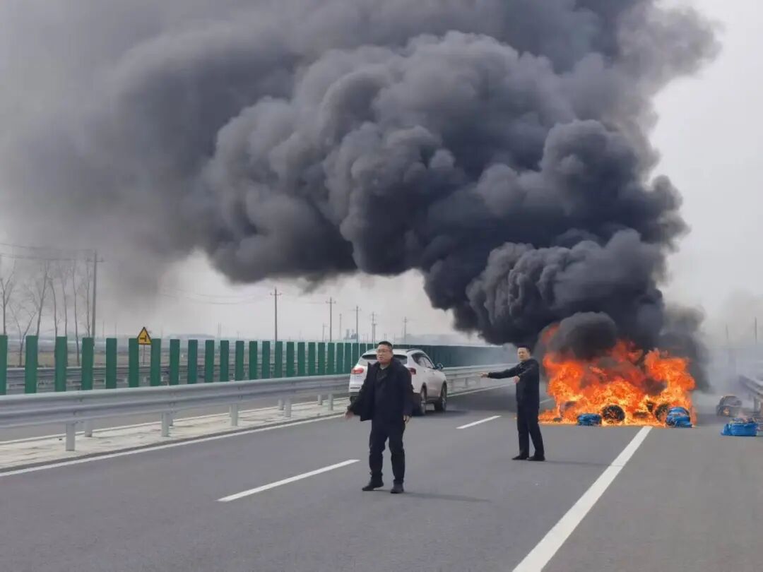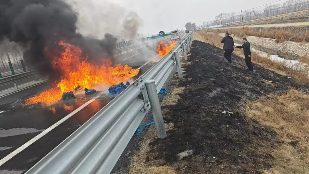 “太危险了!高速上车速快,一旦撞上燃烧物后果不堪设想!”救援人员当即分工,民警鲍守明狂奔至来车方向200米外,挥手示意后方车辆减速避让。