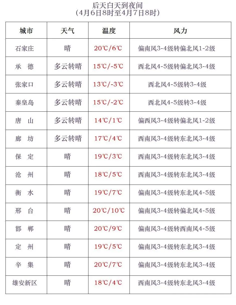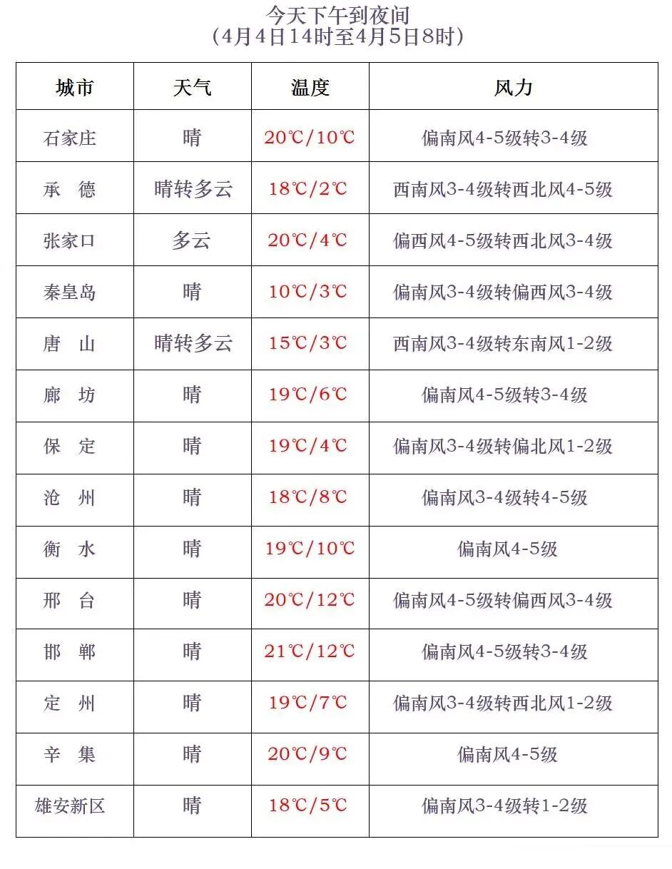 河北省气象台2026年4月4日17时发布天气预报: