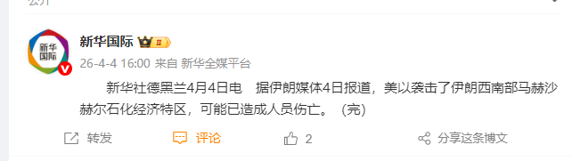 据新华社,伊朗媒体4日报道,美以袭击了伊朗西南部马赫沙赫尔石化经济特区,可能已造成人员伤亡。