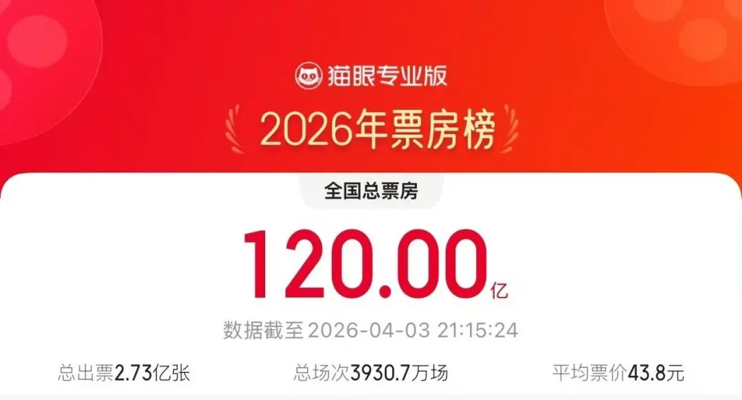 ■ 截至3日,2026年中国电影票房(含预售)已经突破120亿元,观影人次达2.73亿。