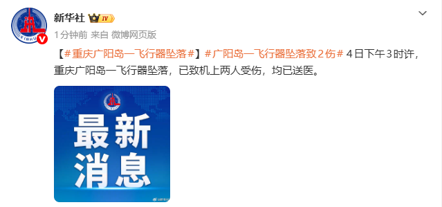 4月4日下午3时许,重庆广阳岛一飞行器坠落,已致机上两人受伤,均已送医。