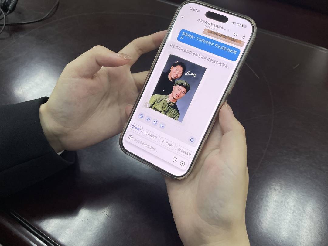 清明节前,封面新闻记者在现场目睹了AI修复照片的过程,用时仅20多秒。只见工作人员将一张黑白老照片上传到AI软件,然后输入相关提示词,不一会儿,一张修复后的照片便生成。相较于修复前,画质明显更为清晰,色彩也非常自然和谐。