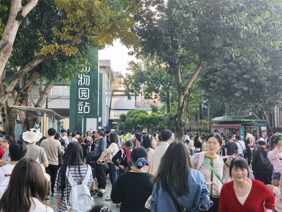 四川广安的刘先生一家四口也是假期出游的家庭之一,考虑到距离因素,他们选择了来到重庆动物园,“入园的时候还好,基本上提前预约、购票了扫码就可以进,出来的时候人太多了,只能慢慢走。”