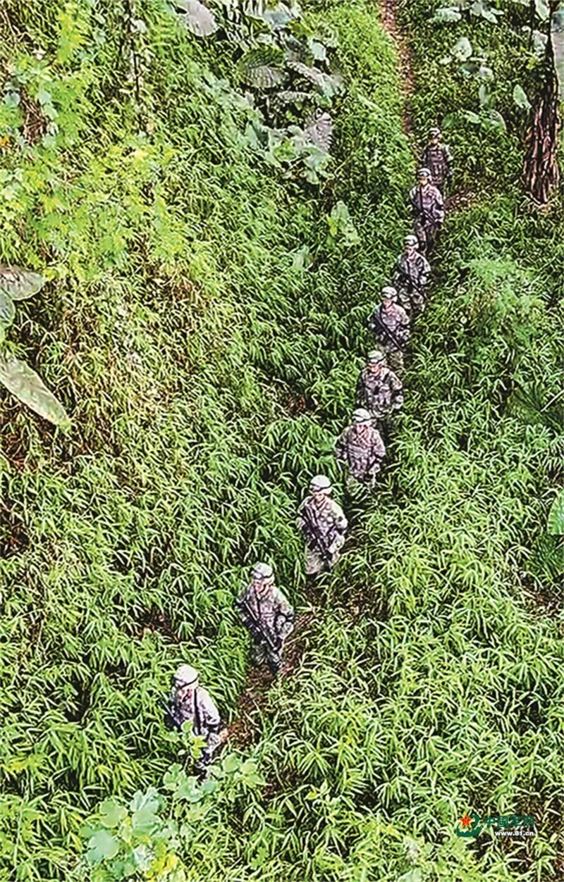 巡逻官兵穿越丛林。