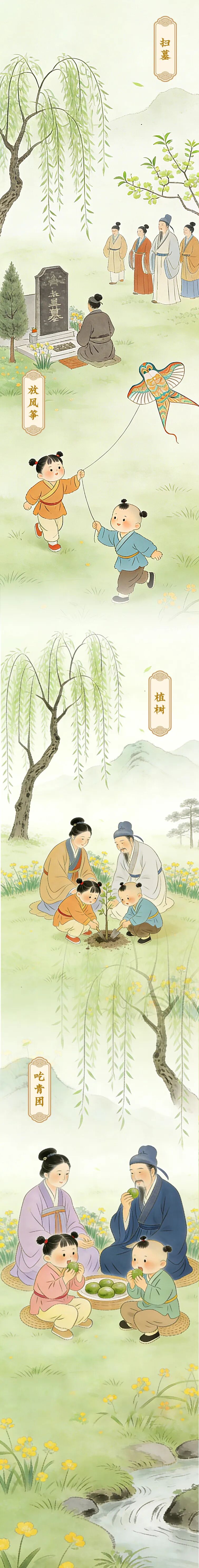 与寒食节合并:春秋时期晋文公为纪念介子推,定寒食禁火,唐代将扫墓定为寒食节活动,因日期相近与清明合并。