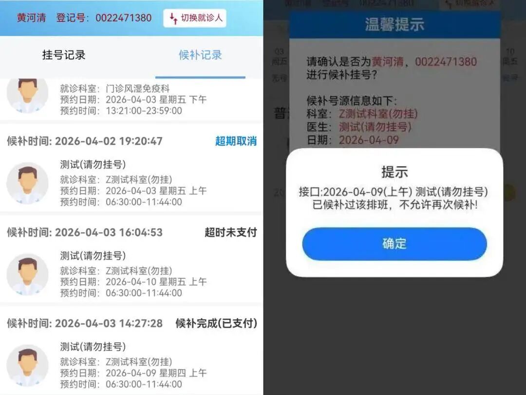 号源满额后,患者可发起智能候补挂号申请并先行自费支付挂号费用,候补成功后可在窗口或自助机换成医保号,候补失败后自动退款至原付款路径。申请候补后系统按时间自动排序,并实时监测号源变动。一旦出现退号,将按照候补顺序自动匹配锁定号源,全程无需人工干预。
