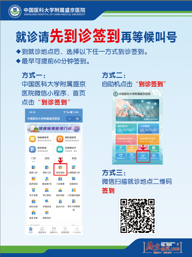 中国医大盛京医院启用到诊签到,引导患者有序就诊;搭建统一预约平台,实现自动分诊、手机改约、系统叫号、检查结果自助打印及线上查询,构建检查全流程闭环管理;开设晚间门诊、周末门诊、假日无休门诊、儿科夜间门诊和急诊班次。
