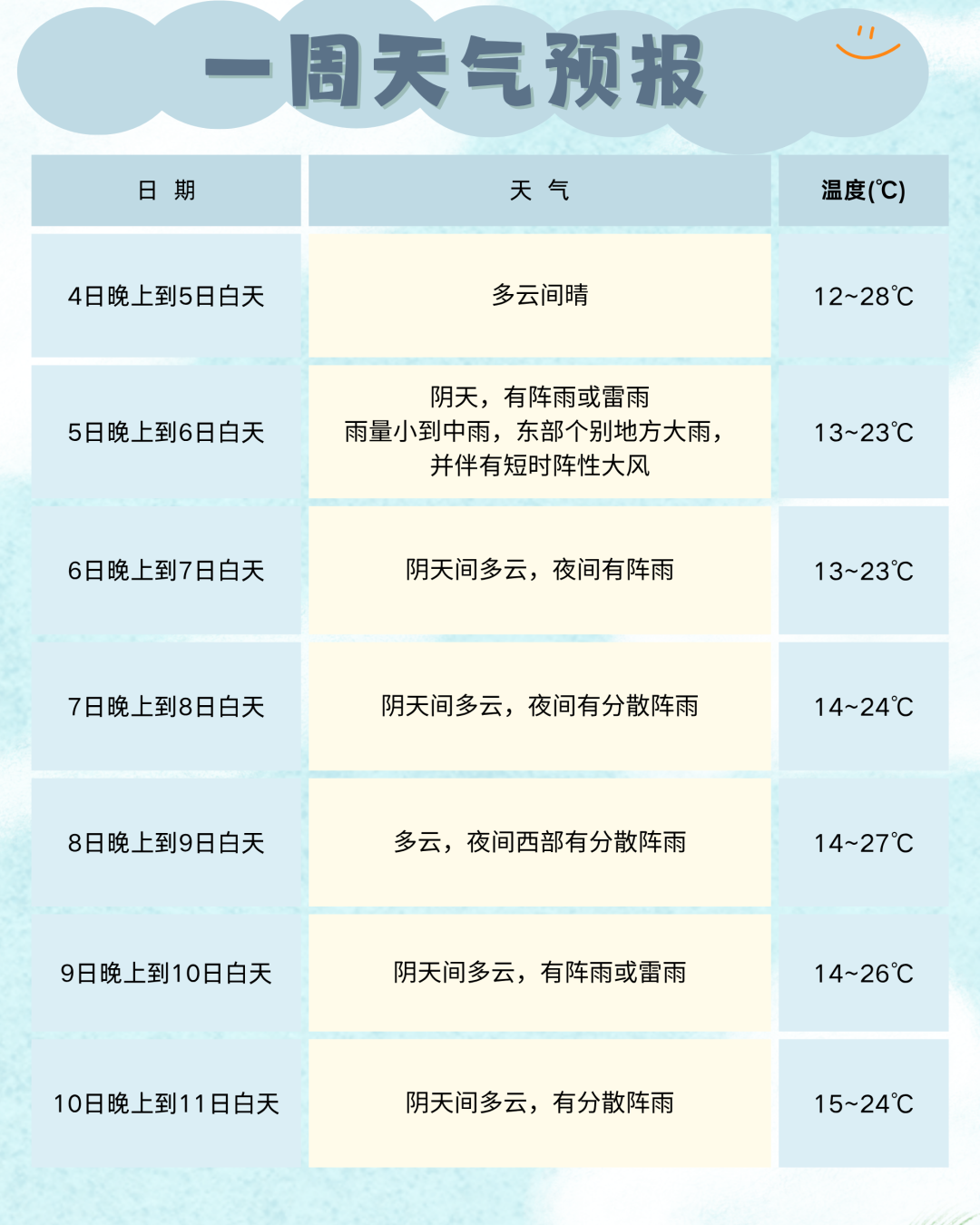 据成都气象,今日早间我市以云层为主,11时全市平均气温为22.5℃;预计午后阳光在线营业,日最高气温在28℃上下;夜间天空状况较差,有阵雨或雷雨,雨量小到中雨,东部个别地方大雨,并伴有短时阵性大风。