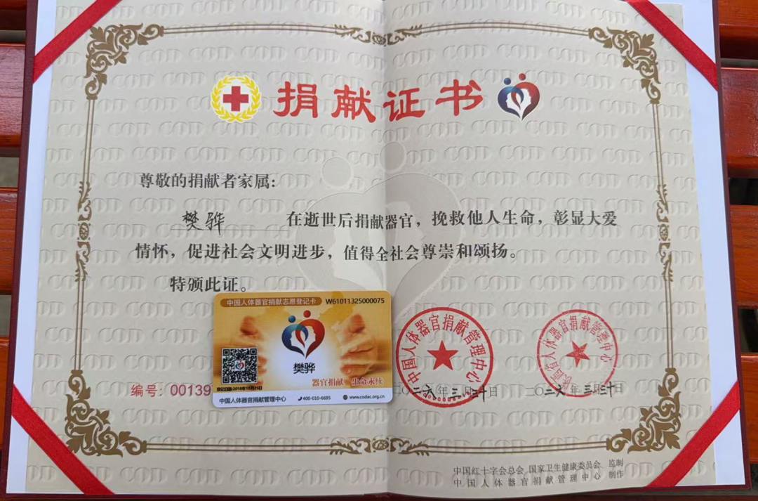 3月31日,记者了解到,樊骅生前是东航西北分公司市场部员工,2018年他被确诊为脑部胶质瘤,在与病魔缠斗的八年时间里,樊骅瞒着家人曾签下了器官捐献证书,直到病情急转直下再次入院时,家人才意外发现了一张遗体器官捐献志愿书。