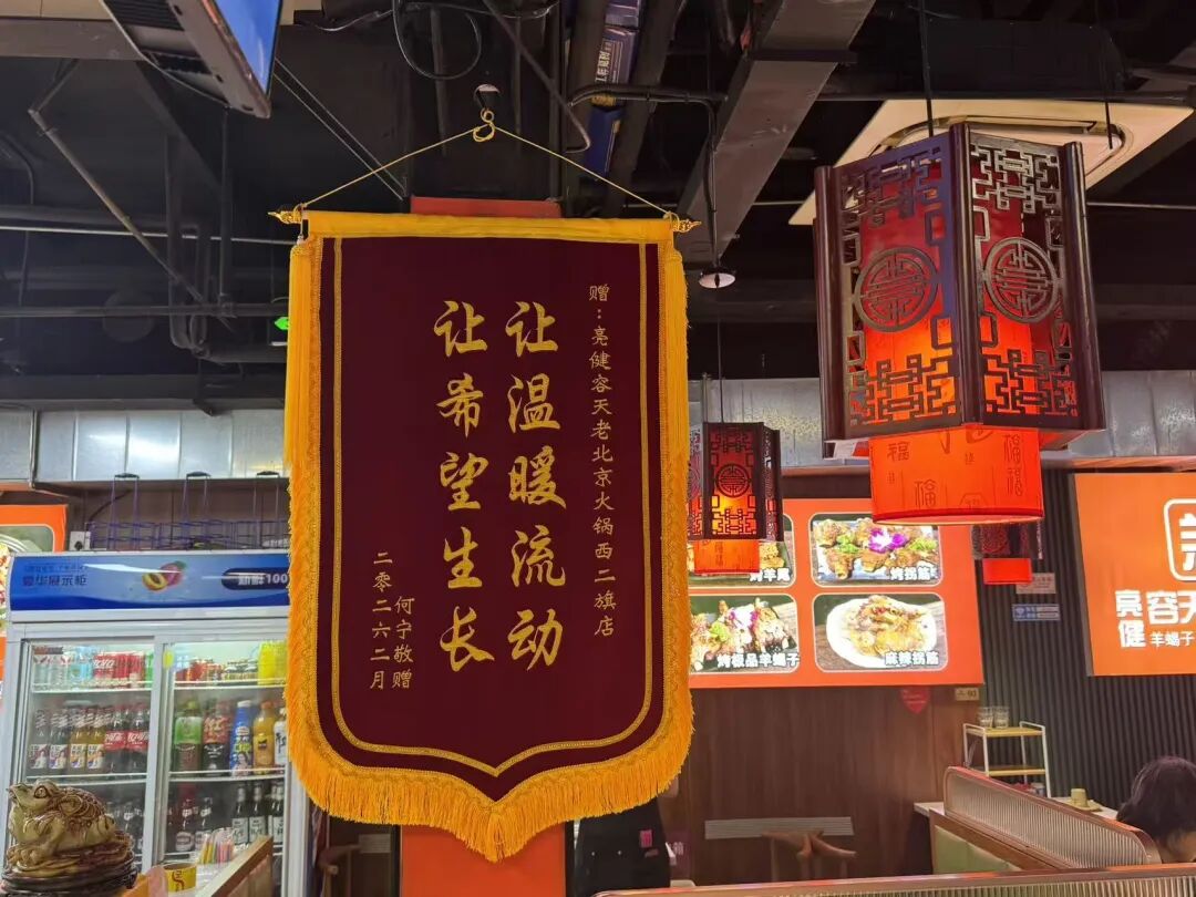 走进亮健容天老北京羊蝎子火锅西二旗店,店两侧悬挂着“齐鲁好男儿”“人民英雄”“舍己救人”等十多幅锦旗和书画作品。随着夜幕降临,店内顾客逐渐增多,不到晚6时店外已经排起了队。还有的顾客用餐结束后,会在店门外拍照留念。晚上7时30分,一位来自石景山的顾客用餐后将一束花送到前台:“清明了,我们来致敬英雄。”店员杜跃一边接过花束,一边连声道谢:“谢谢你们辛苦过来,还惦记我们这个店,还惦记着老板。”