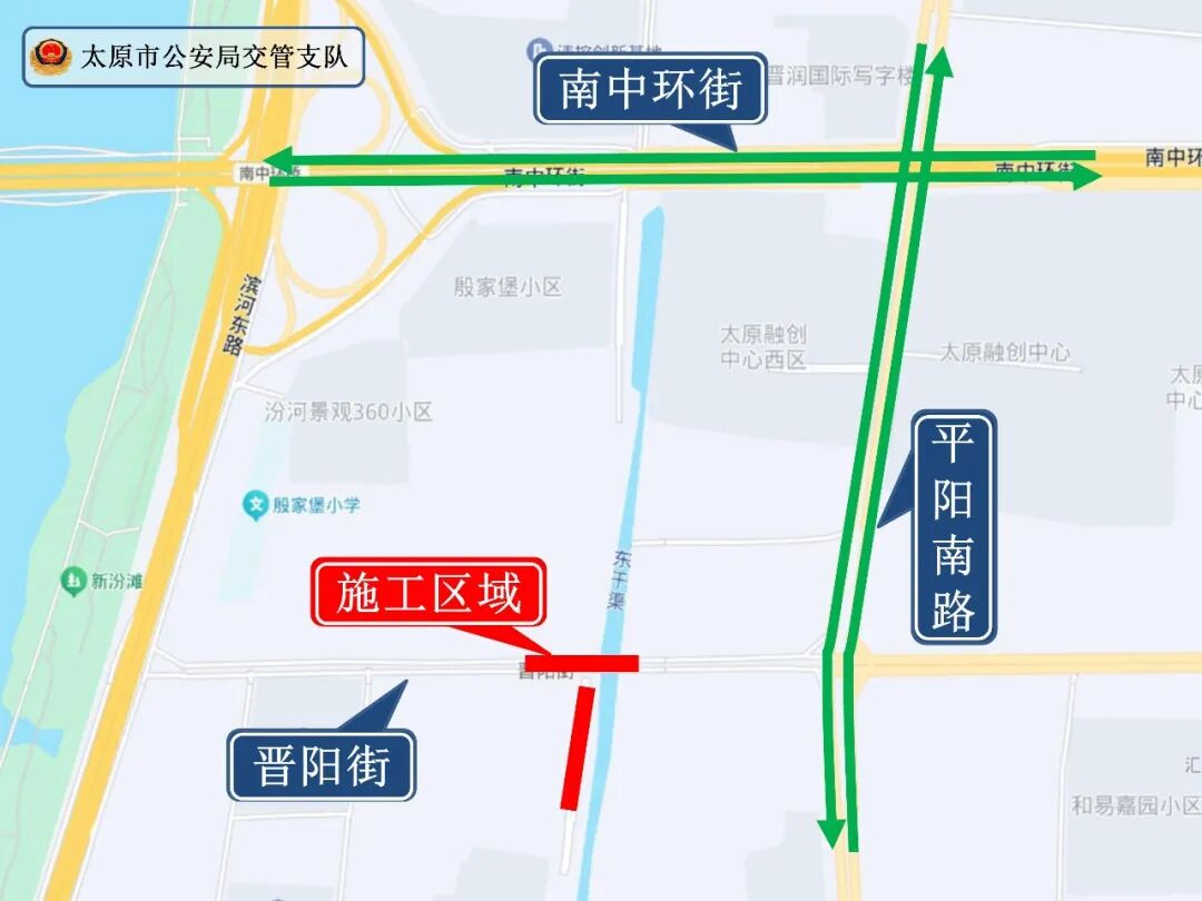 根据施工需要,2026年4月6日0时至2026年6月6日0时将对晋阳街泵站区域排涝能力提升工程进行施工。为确保施工期间道路交通安全与畅通,根据《中华人民共和国道路交通安全法》的有关规定,晋阳街与东沺三巷交叉口(含东沺三巷至巷尾)区域将实施封闭管理措施,滨河东路与平阳南路之间主路交通中断,禁止机动车通行,两侧辅路保留,非机动车与行人可正常通行。