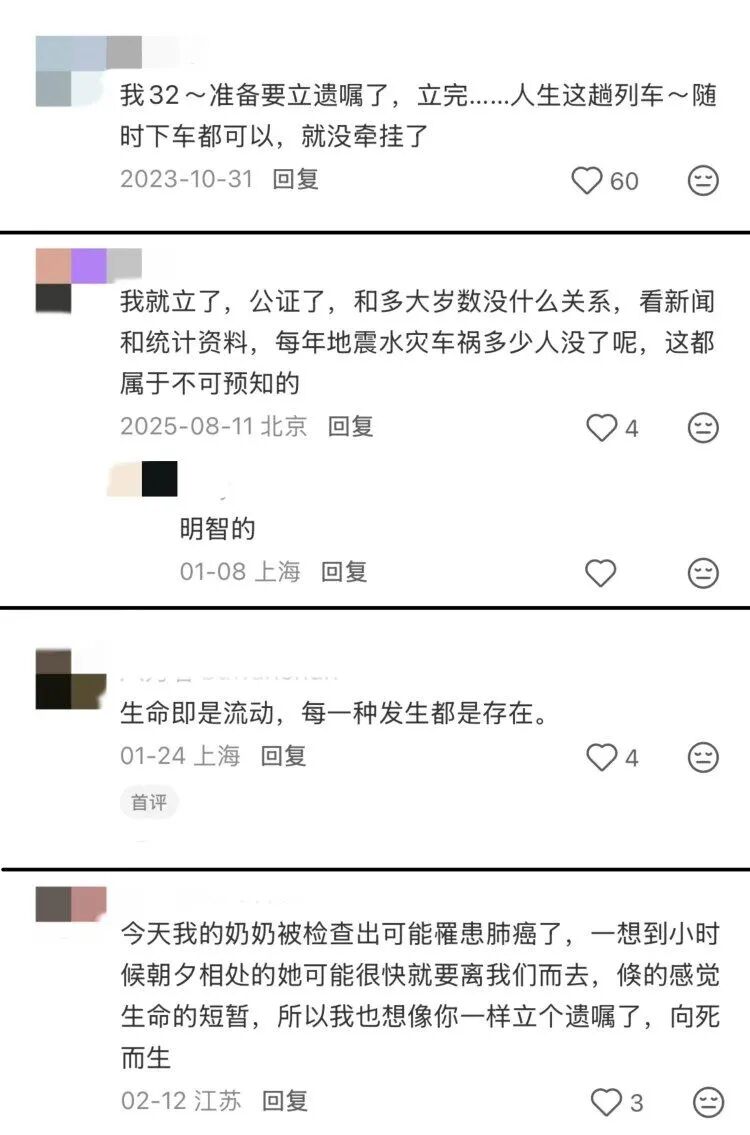 而年轻人讨论的遗嘱内容,早已超越了传统意义上的财产分配,充满了个性化与人文气息:“我的遗照已经选好了,是笑容最明媚的那张”“如果真有那一天,希望把我的骨灰撒向大海,去看看我没来得及踏足的远方”“希望我能悄无声息地离开,所有财物全部捐赠,留给需要的人”……