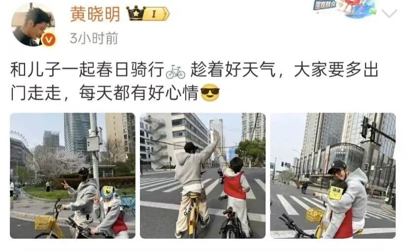 4月4日,黄晓明在其微博账号上发布了他和儿子一起骑行的照片。