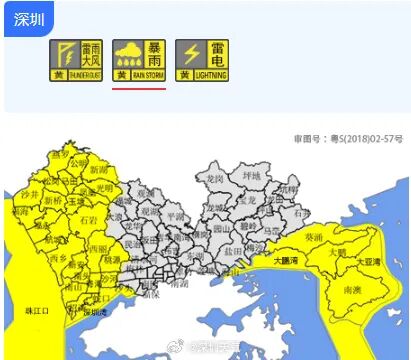 刚刚,深圳市发布分区暴雨黄色预警信号、雷电预警信号扩展至全市。