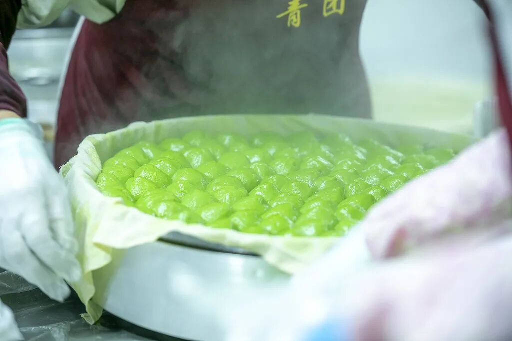 人们将娇嫩艾草切碎捣汁,和在糯米粉中,再包上或甜或咸的馅料,放蒸笼里蒸熟。待到青团出锅,水汽中“糯叽叽”显得尤为可爱,吃上一口全是满足感。