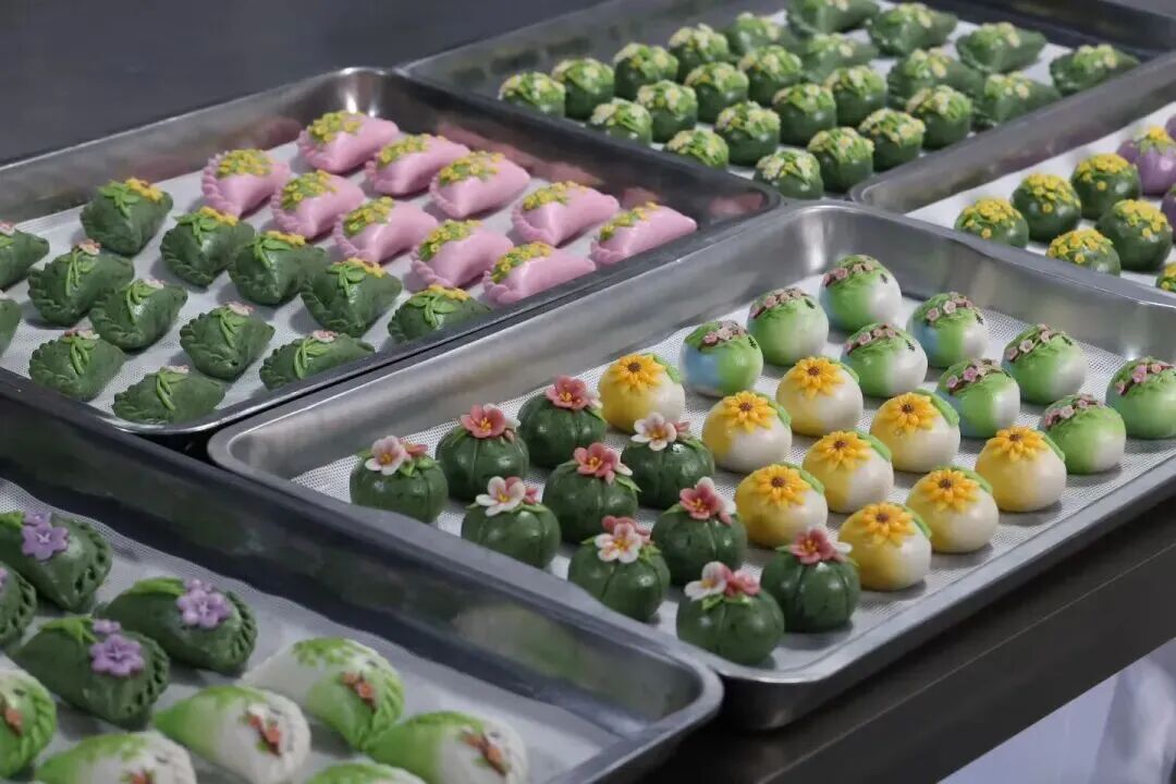 随着创意的加入,以往“素颜示人”的青团如今也发展成为颜值好物。在浙江金华人汪丽娟的手上,青团被捏成了花朵、小动物、福袋等各式精巧模样,保留传统本味的同时,增添了灵动的意趣。