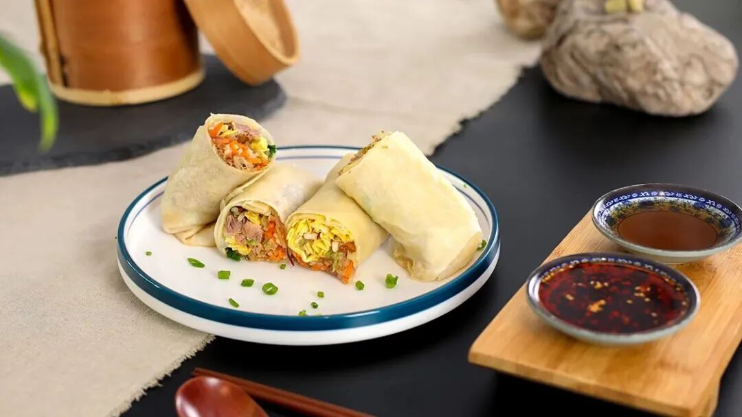 在江南一些地方,还有在清明前后吃春卷、食饼筒的习俗。轻薄的饼皮包着应季的蔬菜和油润的肉类,唇齿间溢满春的气息。