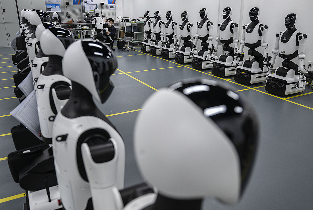 工程师在北京人形机器人创新中心调试人形机器人