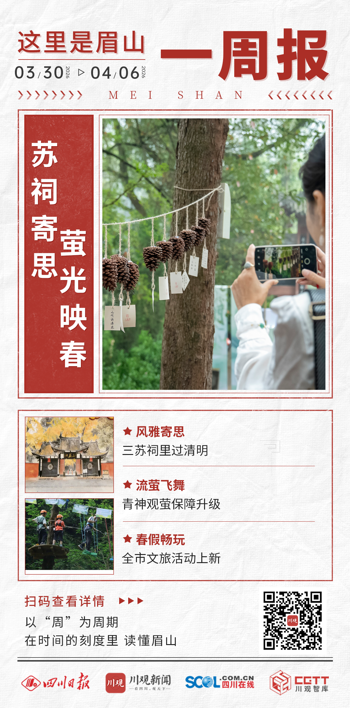 3月30日-4月6日,这一周,眉山春假与清明假期相连,文旅市场持续升温,三苏祠以风雅仪式缅怀先贤,青神萤火虫迎来最佳观赏期,全市多条精品研学路线受热捧、各县区特色文旅活动密集上线,东坡文化与生态旅游融合发展,展现眉山文旅活力。