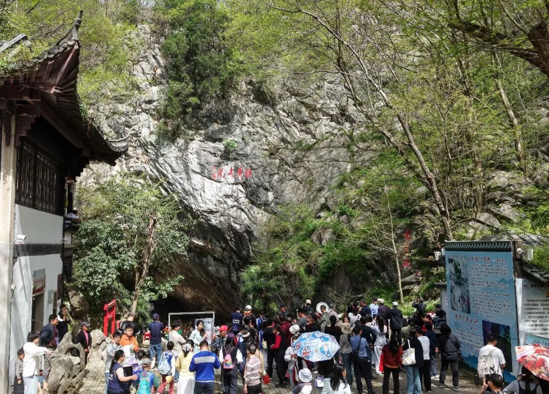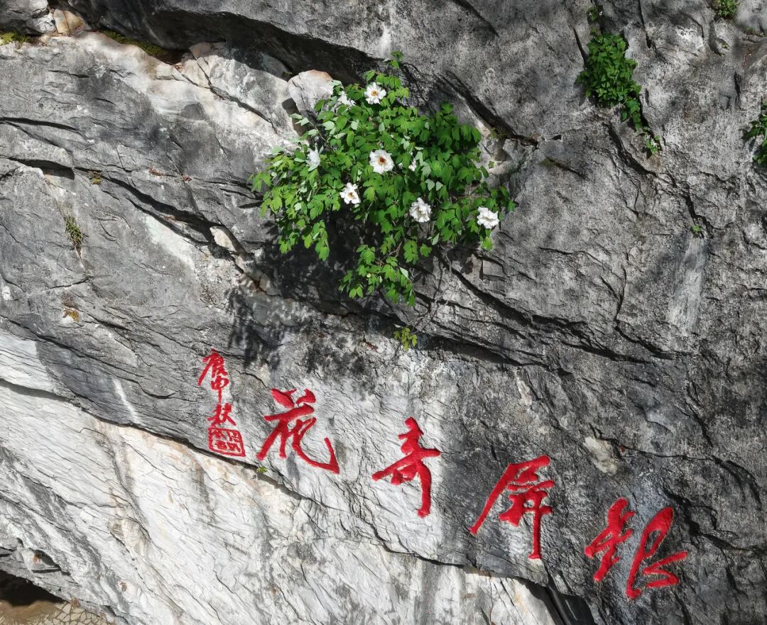 当天,天气晴好,银屏山景区迎来踏青赏牡丹的客流高峰。大家登高远眺,争相一睹绝壁牡丹初绽芳容,在青山云雾间感受千年古花的灵秀与生命力。