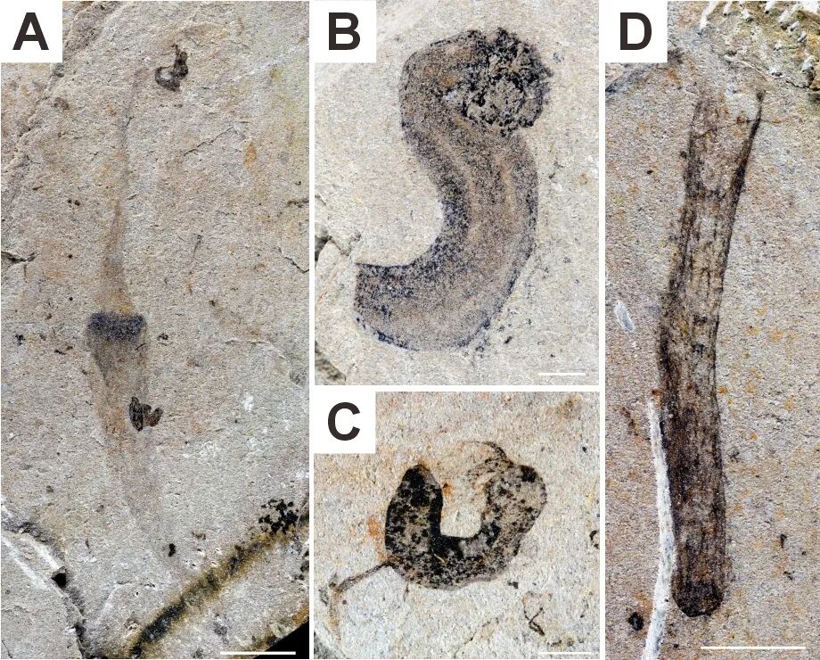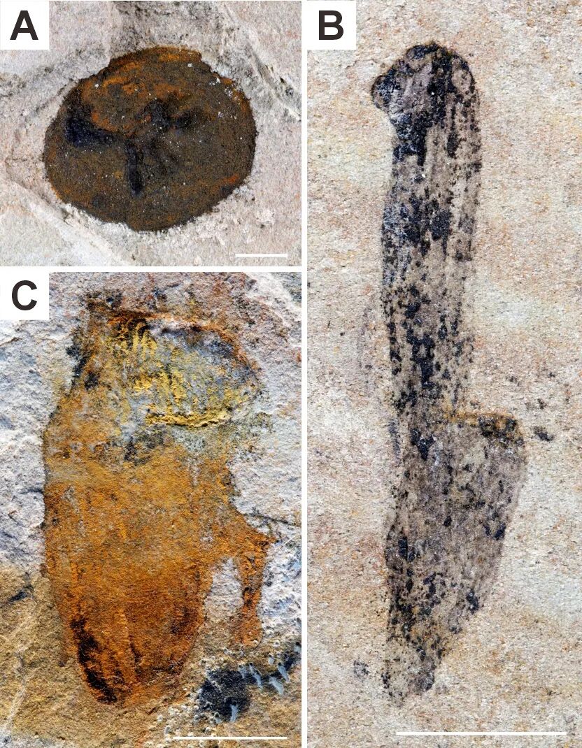 江川生物群中保存的两侧对称动物化石。(云南大学古生物研究院供图)
