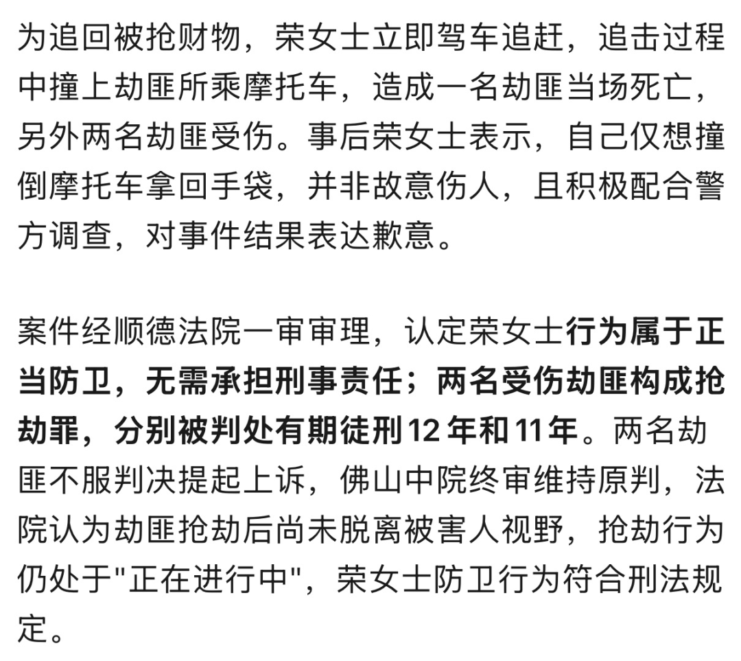 据法治最前线报道,广东佛山顺德区发生一起抢劫案,37岁生意人荣女士驾车驶出车库时,遭劫匪埋伏。劫匪持铁制工具砸碎车窗,拉扯其头发抢走副驾驶位手袋,袋内装有8万余元现金及收款单据,随后劫匪骑摩托车逃窜。