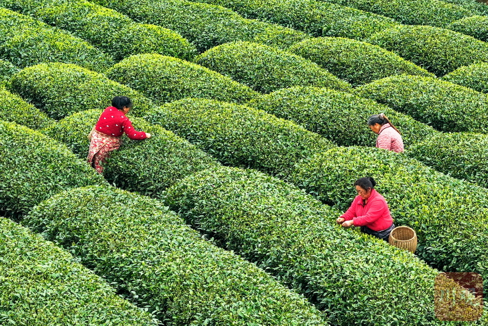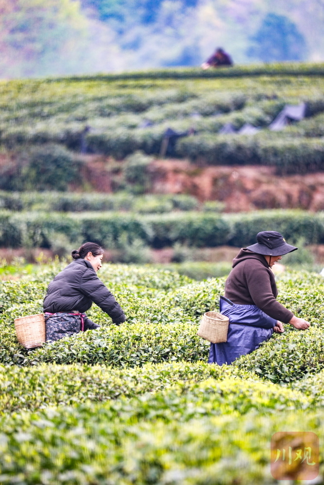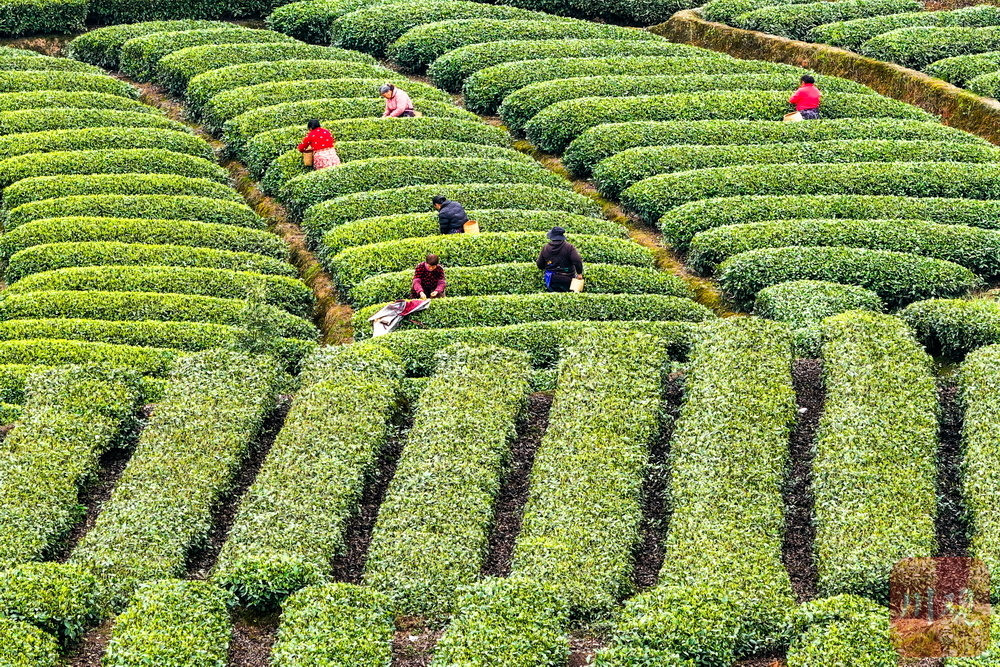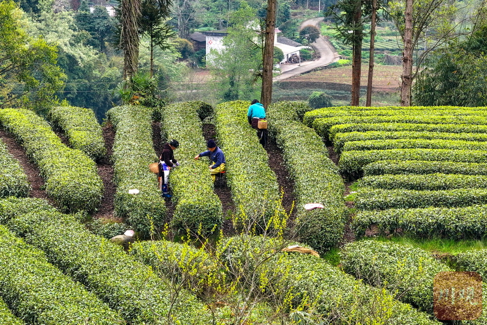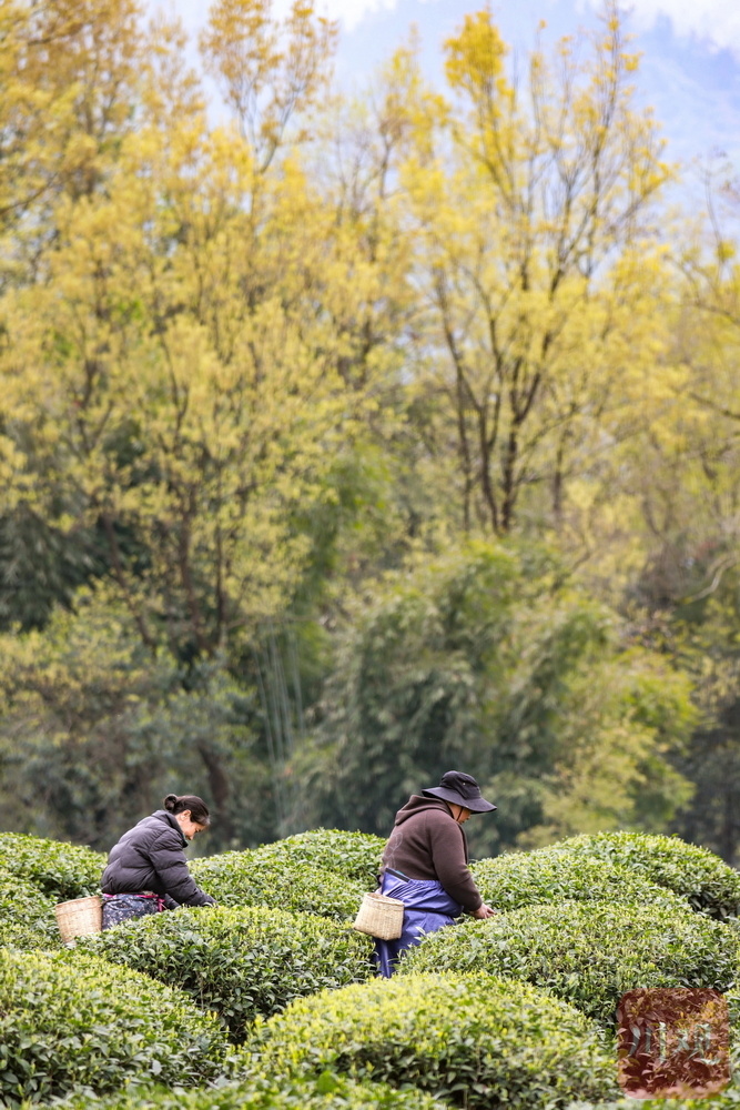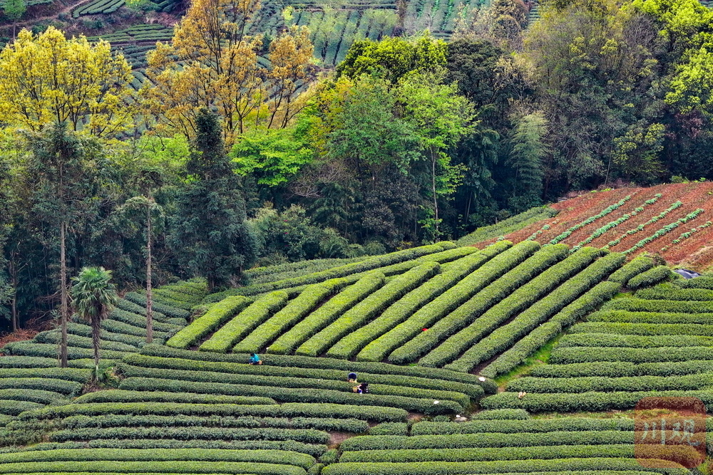 清明时令雨如麻,野菜山茶次第芽。4月5日,清明,走进雅安市天全县乐英、始阳等乡镇,碧绿的高山茶园内,一排排茶树汇聚成为延绵起伏、错落有致的曼妙的青翠线条,其间到处是忙碌“采鲜”的茶农,一派繁忙的春日景象。