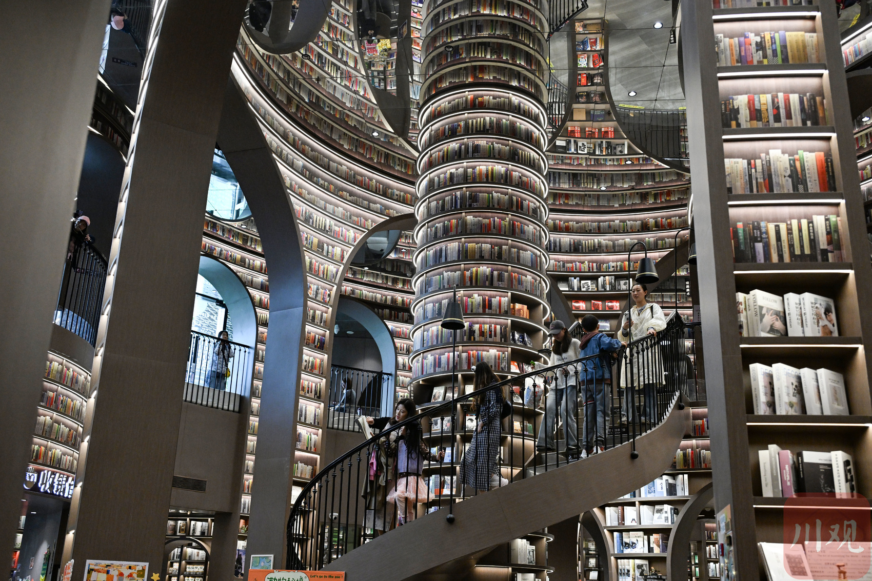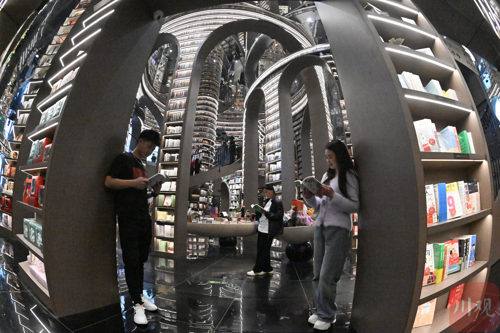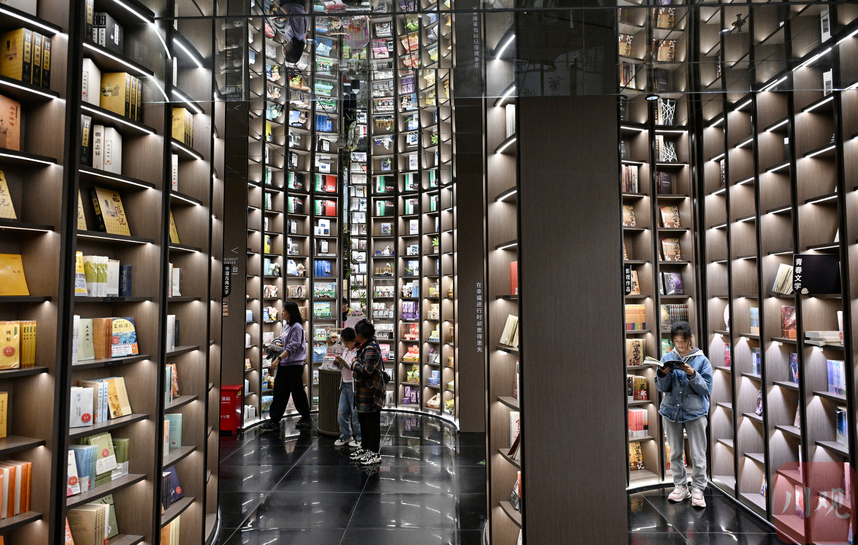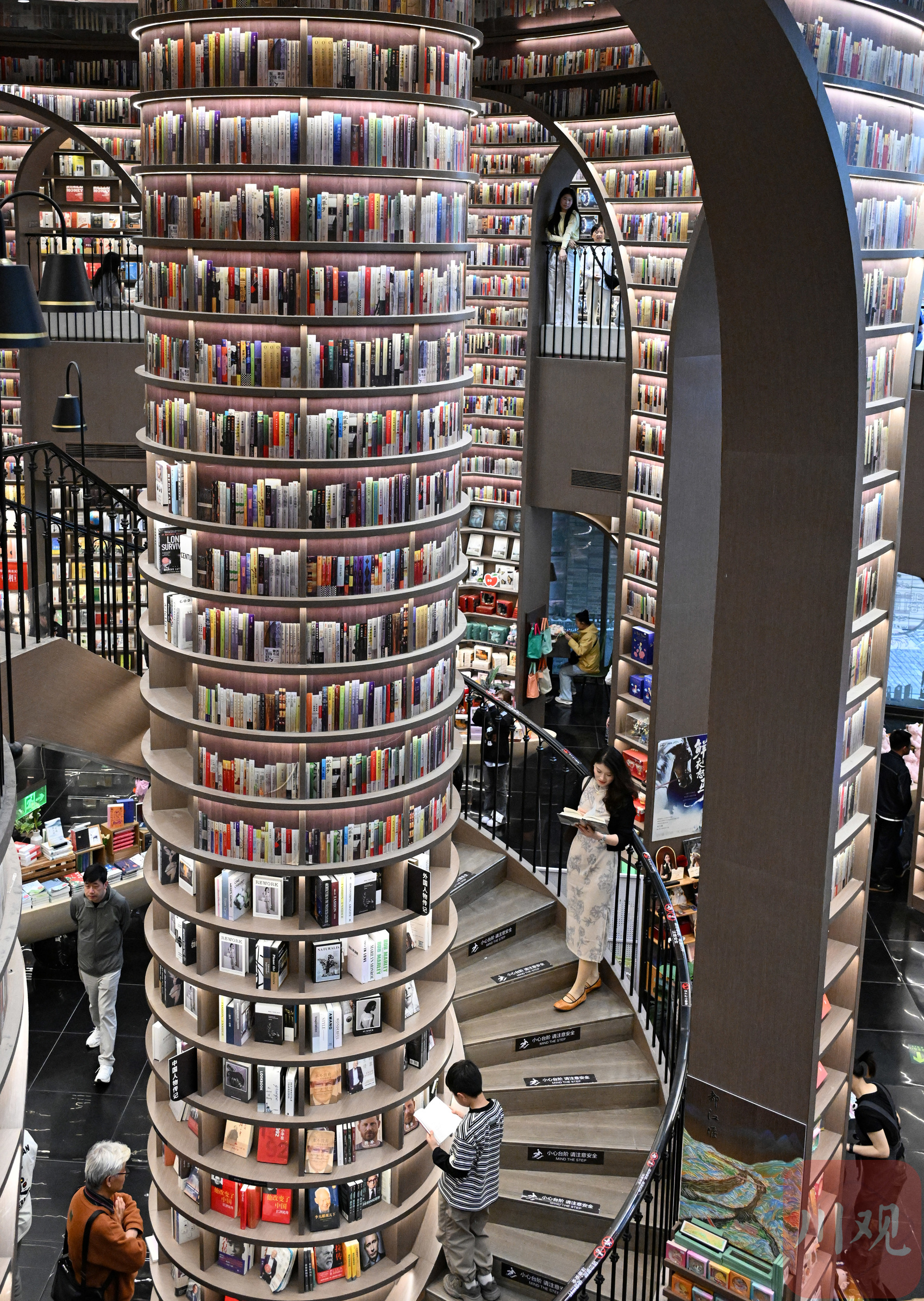 2026年4月6日,时值清明假期,位于成都都江堰市融创茂二楼的钟书阁书店人气旺盛,众多读者在书海中乐享阅读,在品味书香中度过假期。