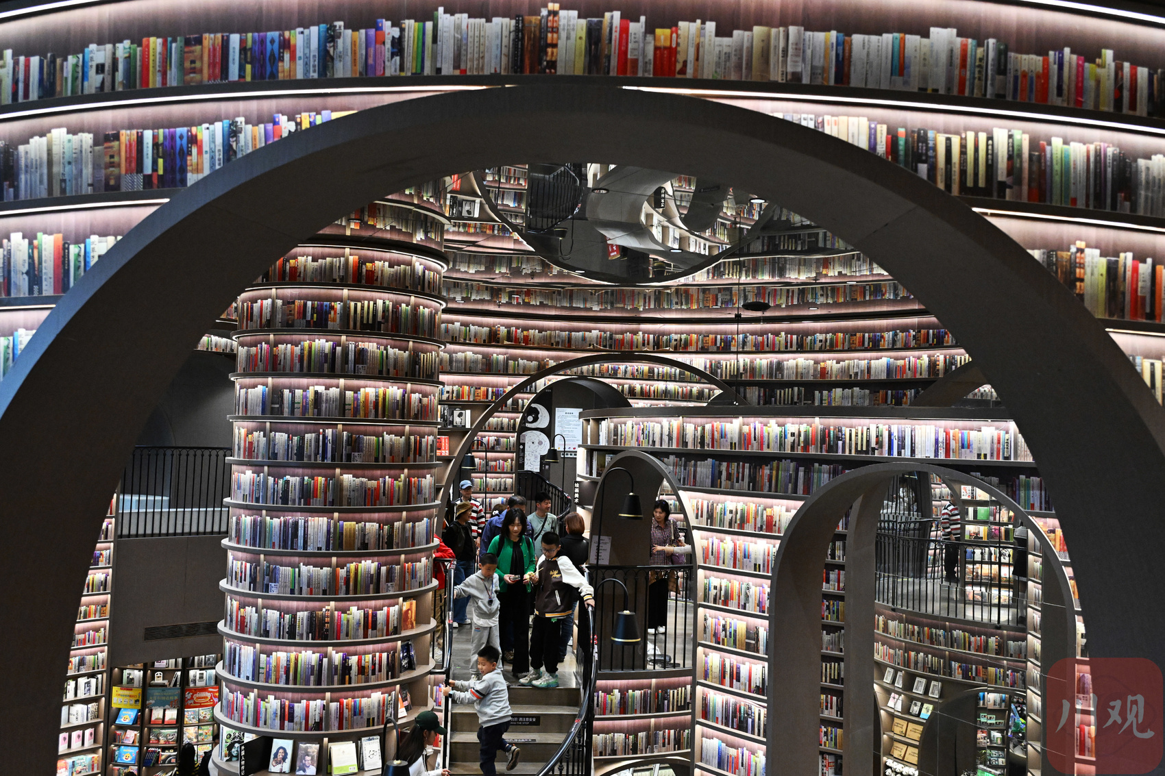 趁着大假,好多喜欢读书的人,走进书店选择自己喜欢的书目,书店火爆人气旺。