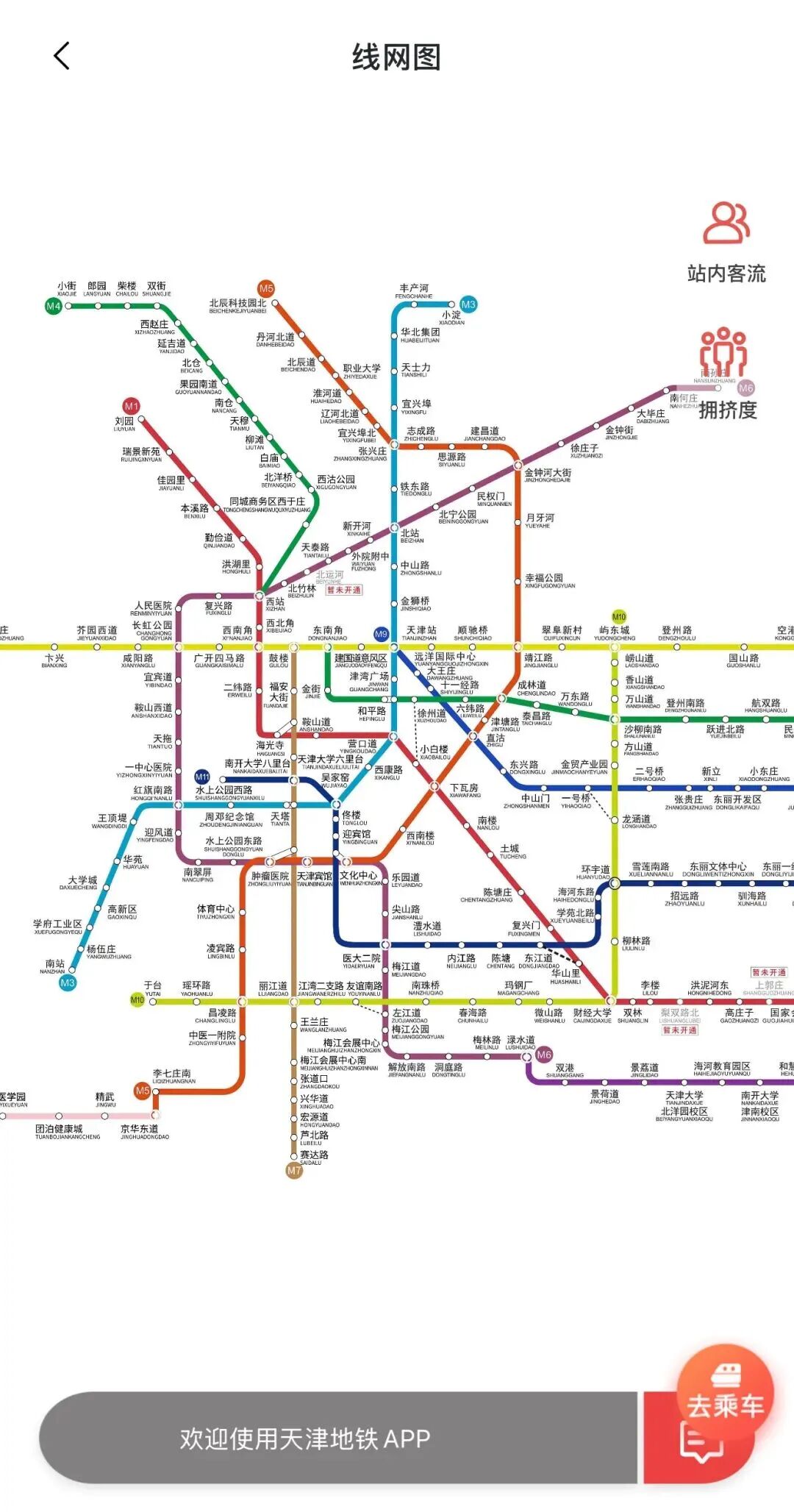 您可通过“天津地铁”App中“地铁线路”功能,查询站内客流拥挤度,选择客流较小时段错峰出行,减少进站、安检、购票、乘车的等候时间。