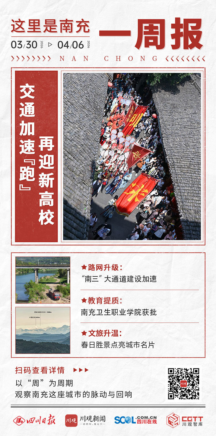 风过果城,春潮涌动。当南充的春光与新绿铺满街巷,城市的脉搏也在这一刻跃动得愈发强劲。过去一周(3月30日至4月6日),从交通基建落地,到教育资源完善,再到文旅消费持续升温,南充的城市能级和区域影响力不断提升,发展动能正加速集聚。
