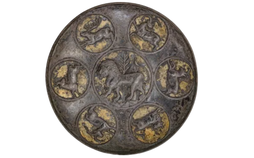 嵌金狮纹银盘。图据四川大学博物馆微信公众号