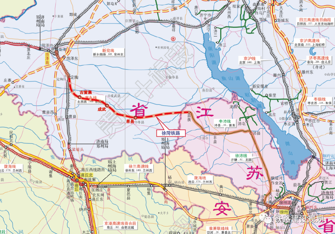 5、徐州至菏泽铁路徐州至菏泽铁路已纳入国家中长期铁路网规划,目前我市正联合山东省相关地市,积极对接国铁集团,深化线路走向、站点设置等方案研究,争取尽快将项目纳入国家年度开工计划,相关前期工作正按程序有序推进。(徐州市发改委3月15日)