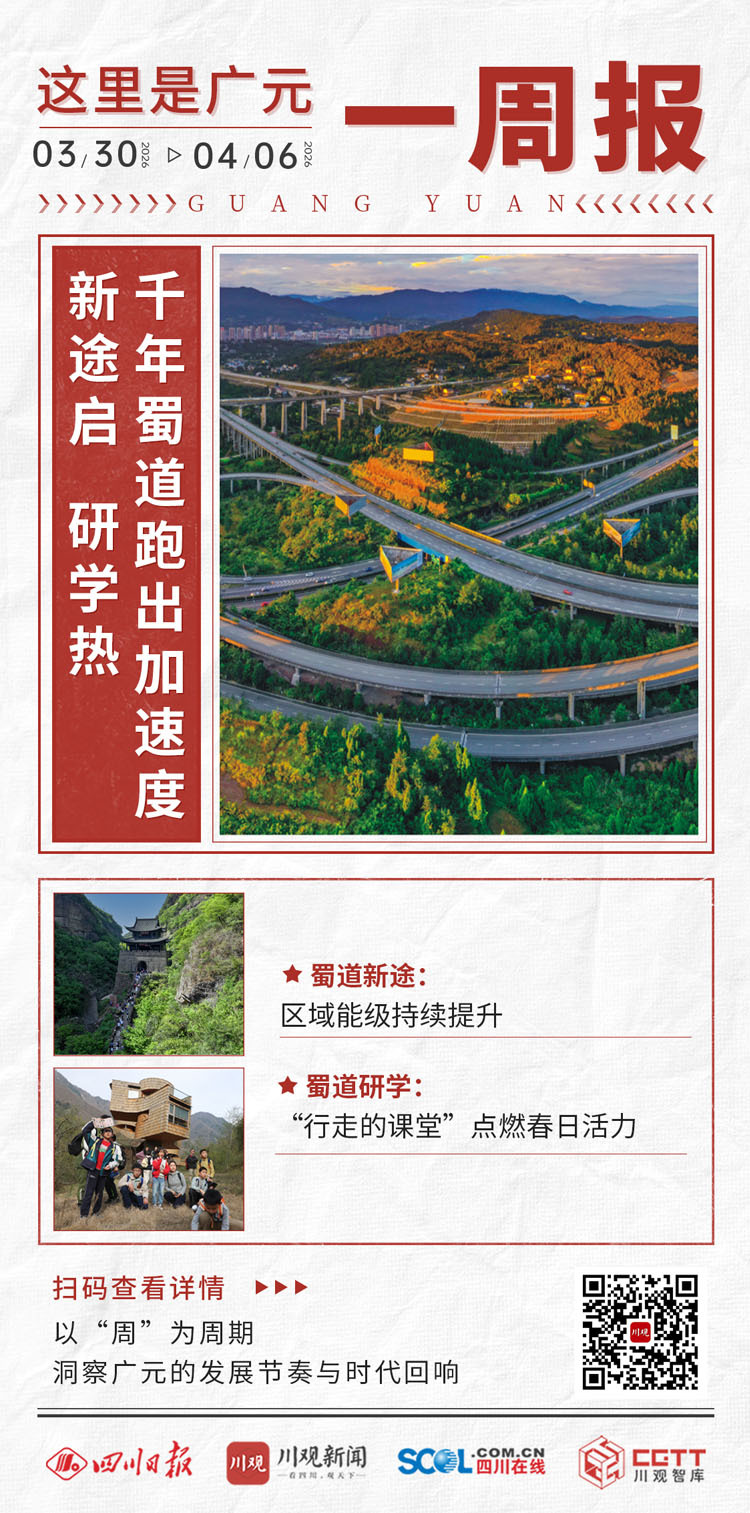 这一周里(3月30日至4月6日),广元迎来喜讯:南三高速正式动工,千年蜀道再添新通途;首个中小学生春假陆续开启,“行走的课堂”点燃文旅新活力。从交通建设到文旅融合,“蜀道咽喉、川北门户”的广元,在“十五五”开局之年的春天,加速向前。