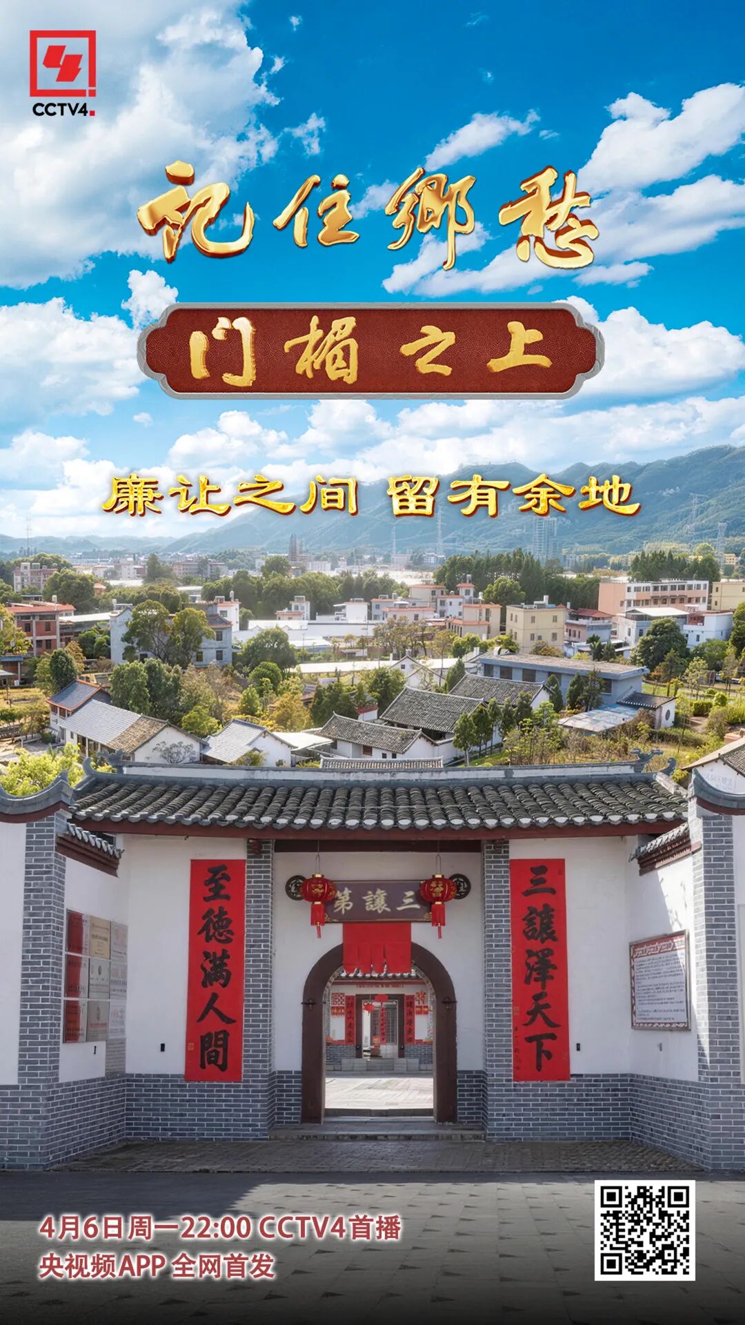 今日22:00,CCTV-4《记住乡愁》“门楣之上”系列,走进广东河源司前村,于吴氏围龙屋的烟火日常里,品读廉让之间、留有余地的家风。