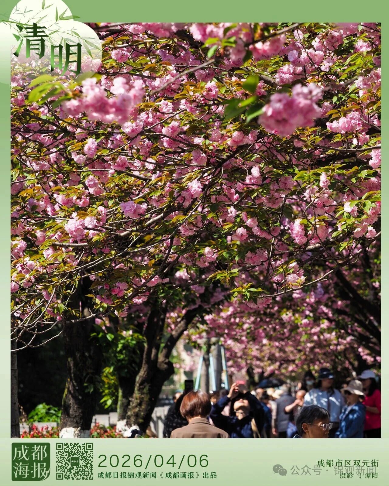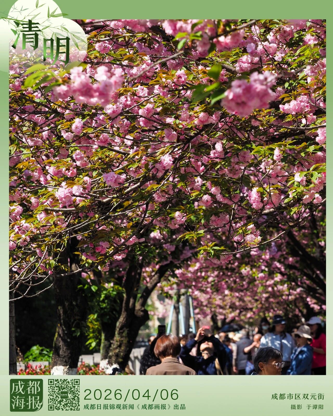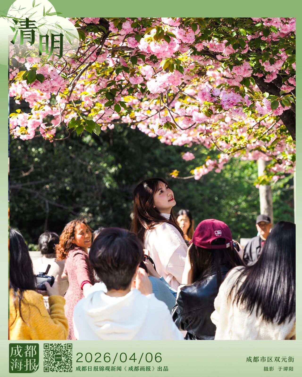 春日假期正是赏花好时节,成都市区双元街的人行道,被密密麻麻的“山樱花海”围拢成一条“樱花隧道”。众多市民游客假期来这里打卡拍照,灿烂笑容与美艳樱花相映成趣,共同构成这段春日美好时光。记者/摄影 于谭阳 制图 曹劲松 严瑾编辑 严心怡审核 王欢