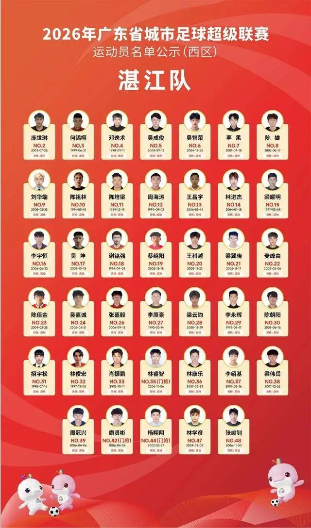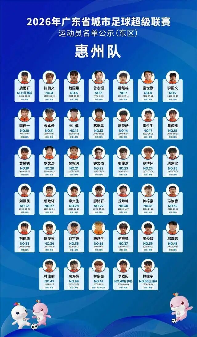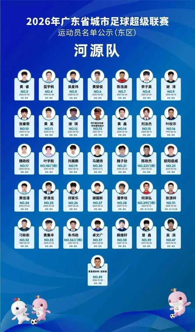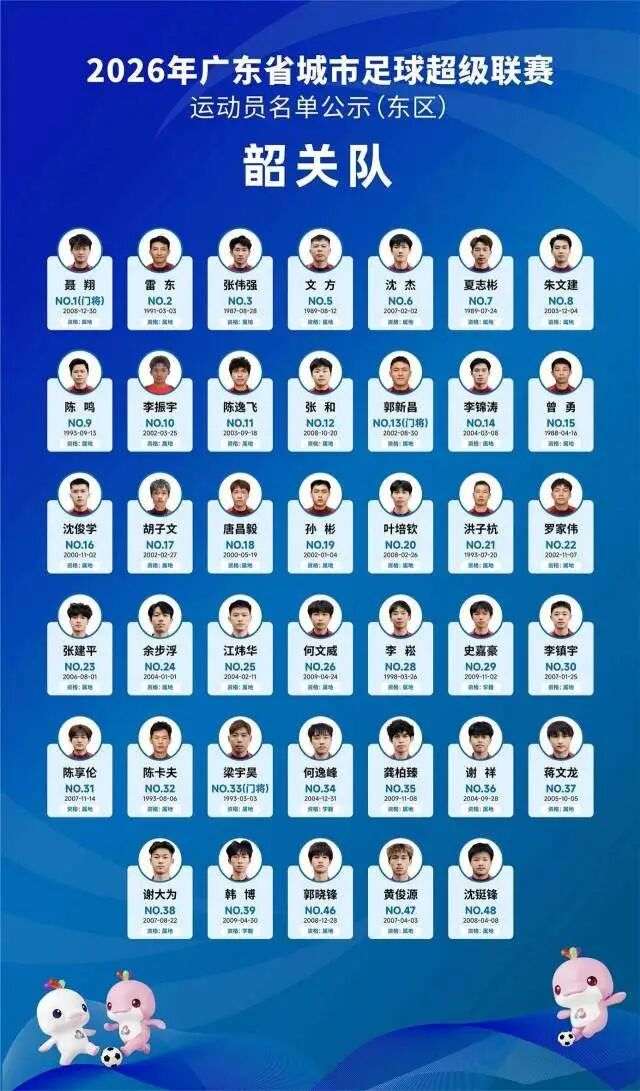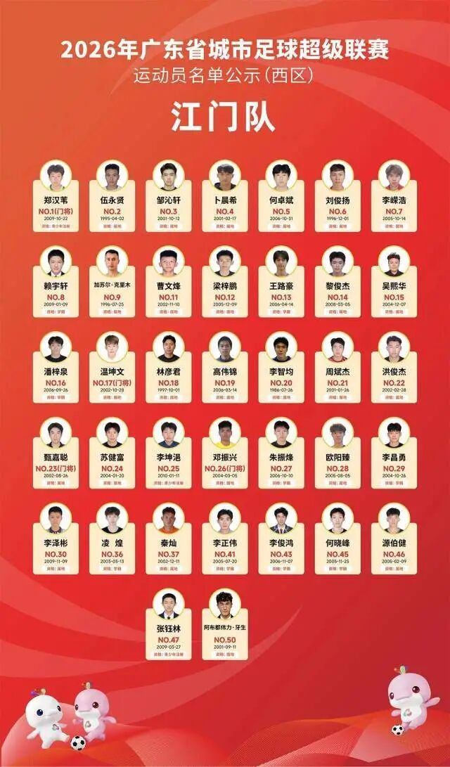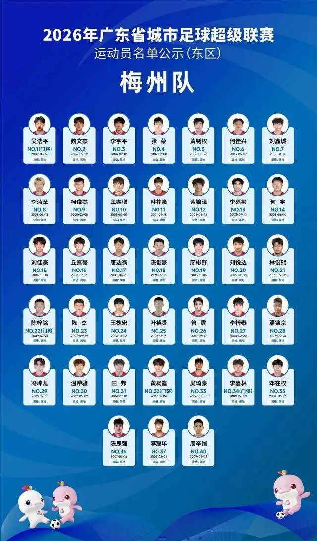 4月5日晚,广东省足球协会正式公示2026年广东省城市足球超级联赛(粤超联赛)21支城市队伍的参赛运动员名单,公示期为4月5日至4月8日17时。其中,广州队以40人阵容亮相,球队以2006—2008年龄段球员为核心,兼顾老中青三代球员配置,正式开启新赛季粤超的备战征程。
