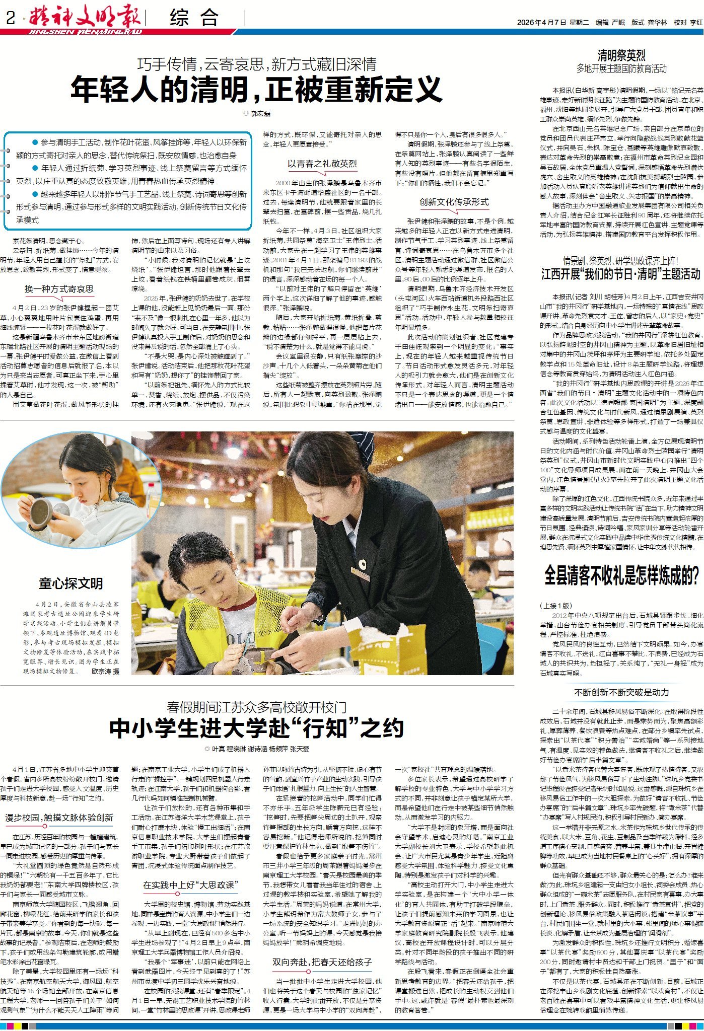 春和景明,寄思遥传。今年清明节,年轻人用自己擅长的方式,让传统祭扫有了新的表达。在乌鲁木齐各社区,手工制作、线上祭奠、英烈事迹学习等活动深受年轻人欢迎。有人借艾草花蛋、祈福挂饰诉说对亲人的思念,弥补了未送奶奶最后一程的遗憾;还有人在折纸菊的专注中致敬英烈,在线上留言里铭记英雄事迹。这些创新形式既环保安全,又为年轻人提供了情绪出口,形式虽变,对亲人、英烈的情意却愈发深厚。来今日2版看详情。